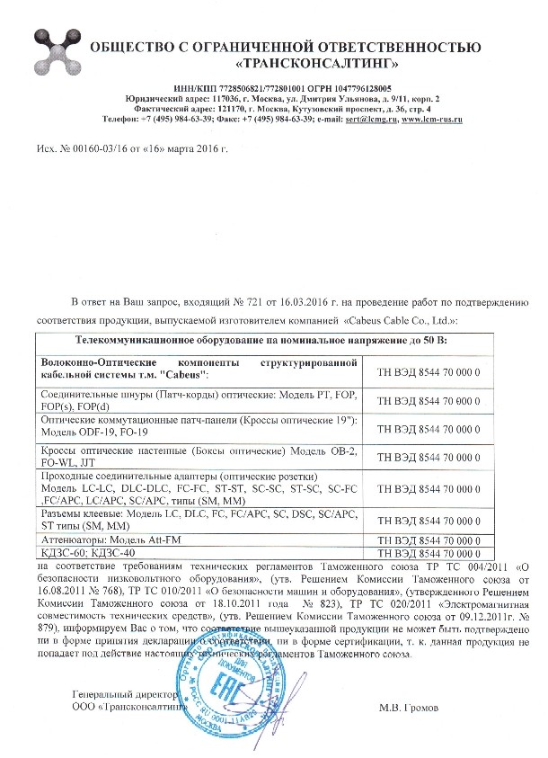 Диаметр кабеля: 5,5 мм ±0,2 мм