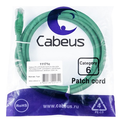 PC-UTP-RJ45-Cat.6-2m-GN-LSZH Cabeus Патч Корды