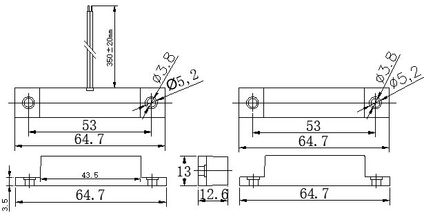 Габариты: 65 х 13 х 13 мм / 65 х 13 х 13 мм