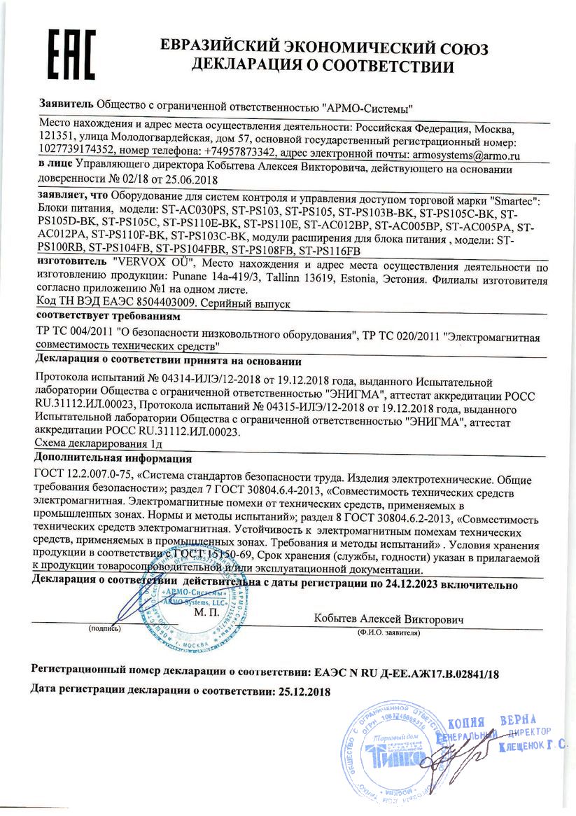 Декларация о соответствии ST-MD018L