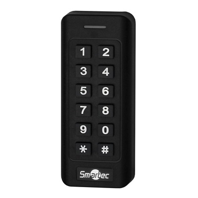 Автономный контроллер Smartec ST-SC312EK-BK со встроенными считывателем EM и клавиатурой, черный, память на 1000 пользователей, дальность 3 - 8 см, 125 кГц, мастер карты в комплекте. Режим работы реле управления замком, -40° +60°С, 12 В DC, 40мА, 106x51x20 мм, материал корпуса пластик