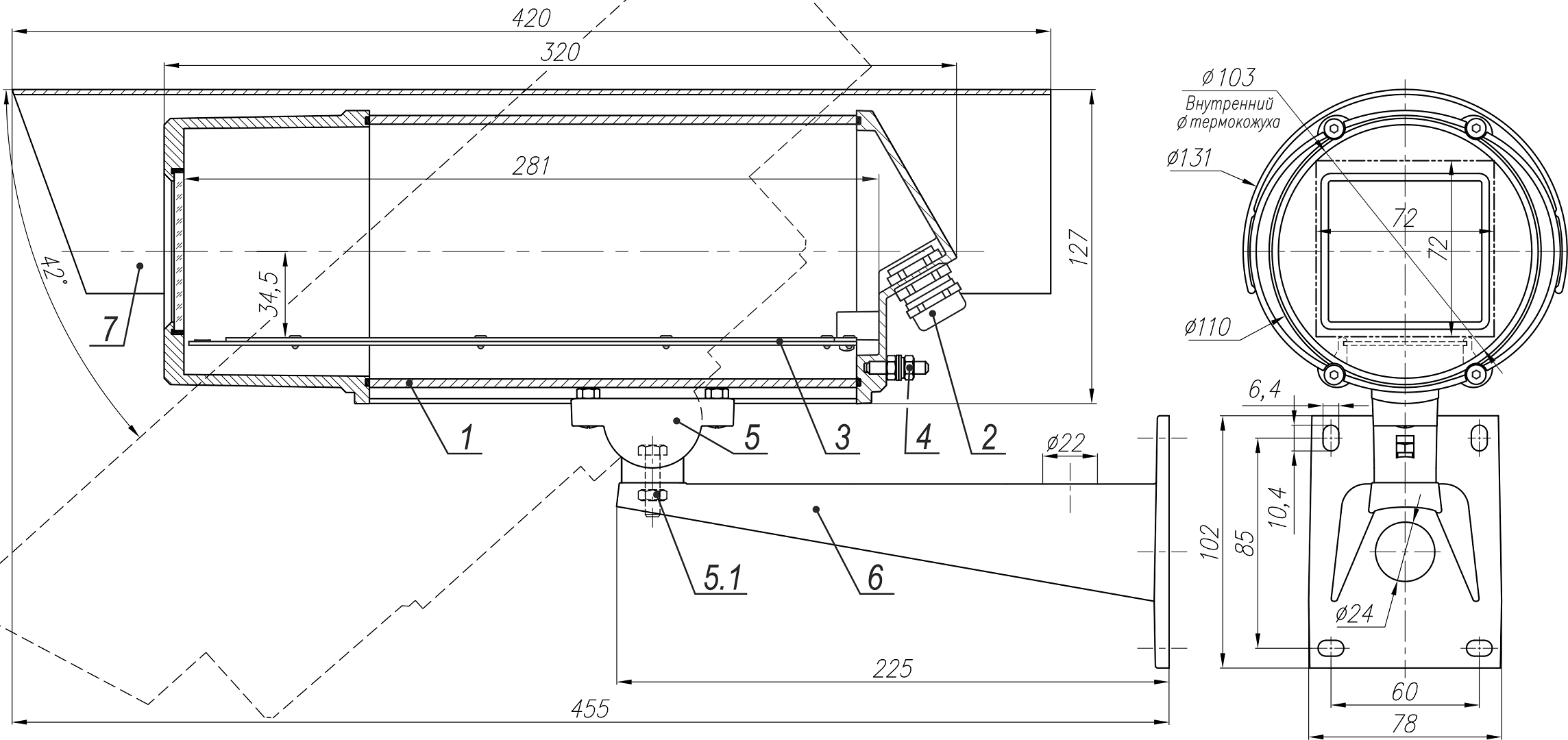 Термокожух взрывозащищенный ТГБ-4М Ex IIC-24/12 предназначен для установки сетевых (IP) и аналоговых видеокамер с объективами, ИК прожекторов и другого электронного оборудования и защиты их от воздействия окружающей среды (влаги, пыли и отрицательных температур).