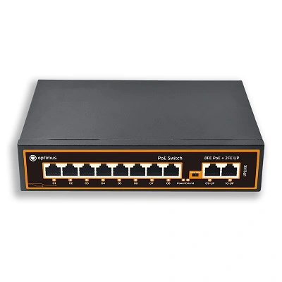 Предусмотрены 2 порта RJ-45 в качестве Uplink со скоростью передачи данных до 100 Мбит/с для подключения коммутатора к локальной сети, сети интернет, видеорегистратору или другому коммутатору.