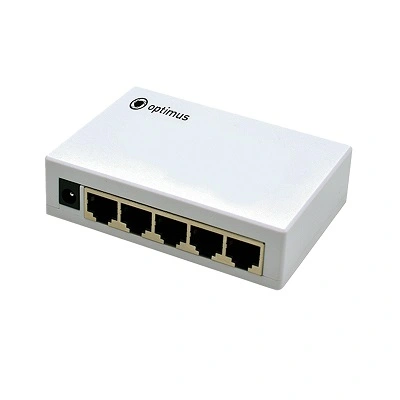 Optimus U1EN-5G - это неуправляемый коммутатор без функции питания PoE. Он оснащен 5 портами 10/100/1000 Мбит/с к каждому из которых можно подключать сетевые устройства (IP-камеры, IP-телефоны, беспроводные точки доступа). Блок питания имеет выходное напряжение 12 вольт.