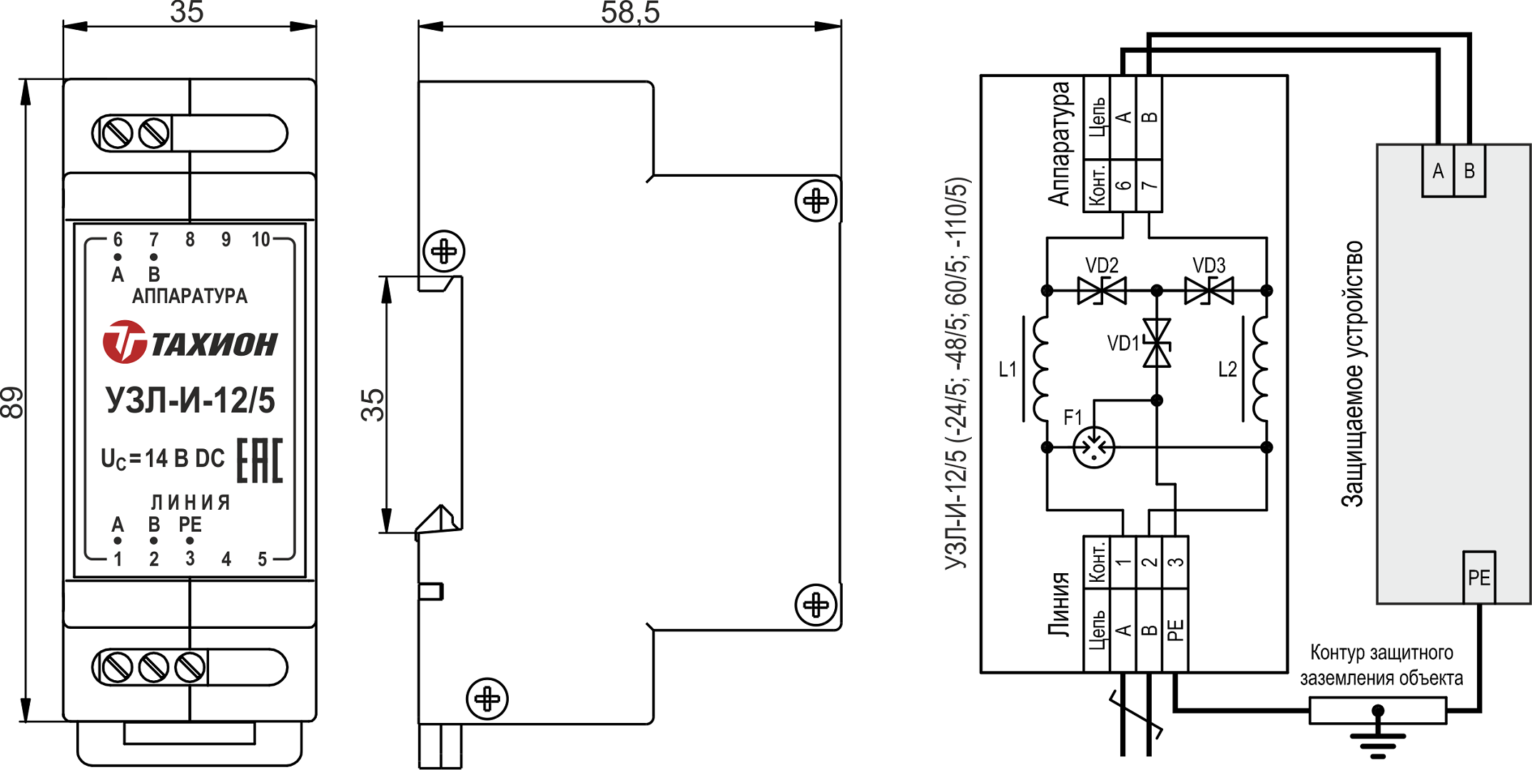 Макс. длительное рабочее напряжение UС: 14 В DC