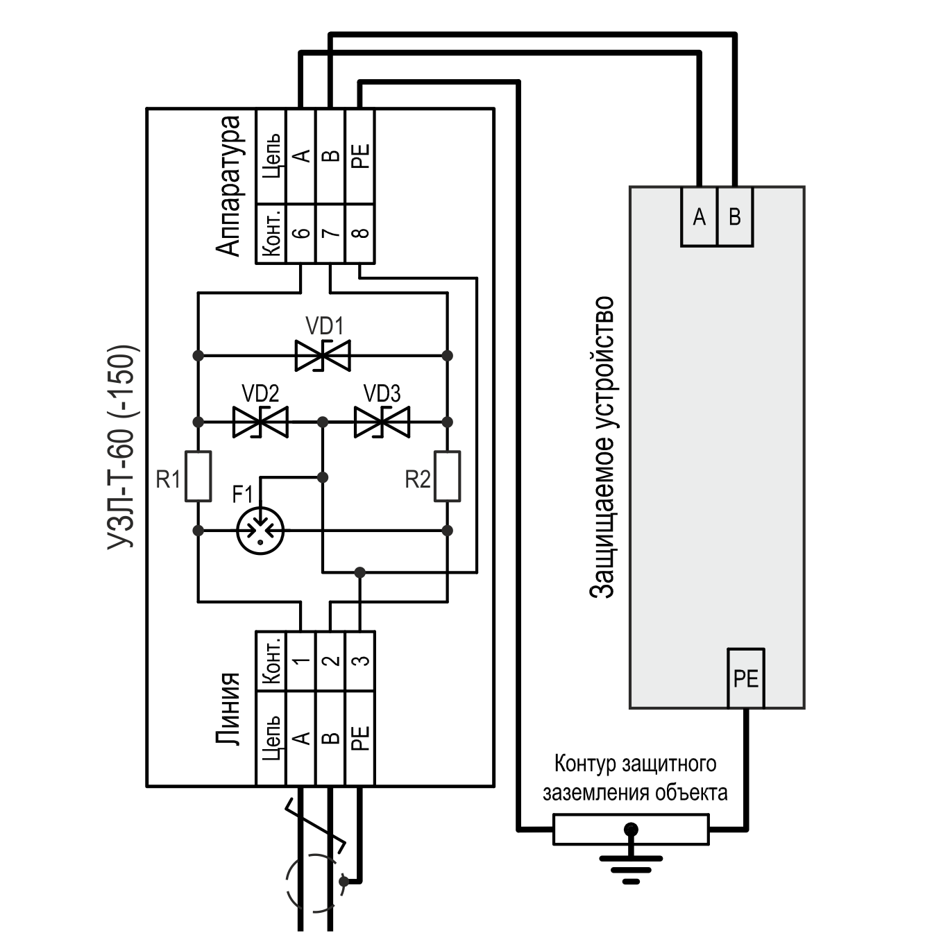 C2 Уровень напряжения защиты UP при In между проводниками пары (А1-B1,A2-B2) (дифференциальная наводка): 95В