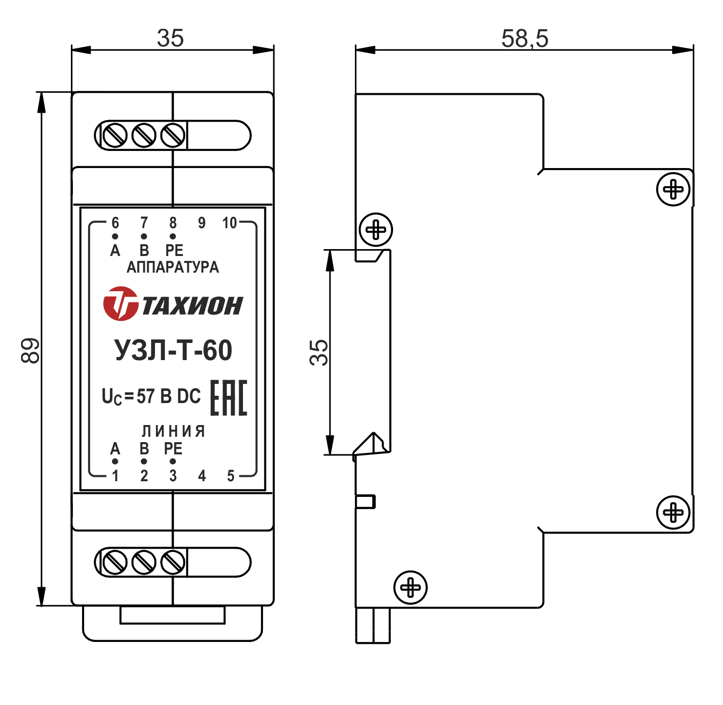 Макс. длительное рабочее напряжение UС: 57 В DC