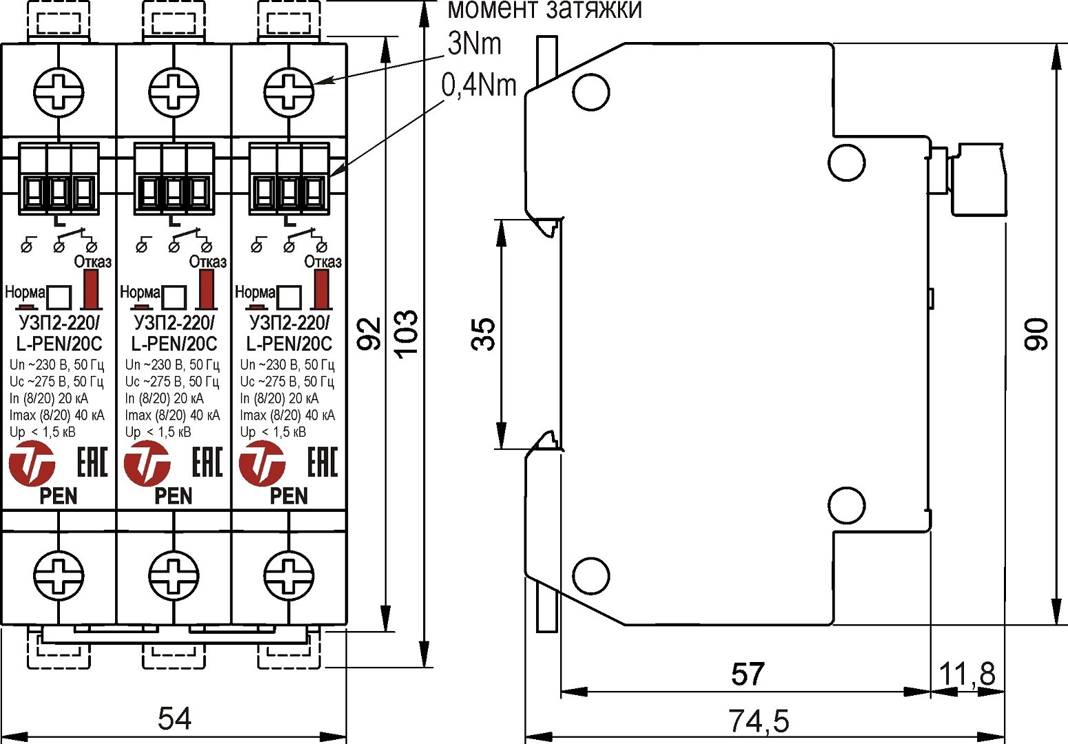 Максимальное длительное рабочее напряжение (Uc) ~275 В / 50 Гц