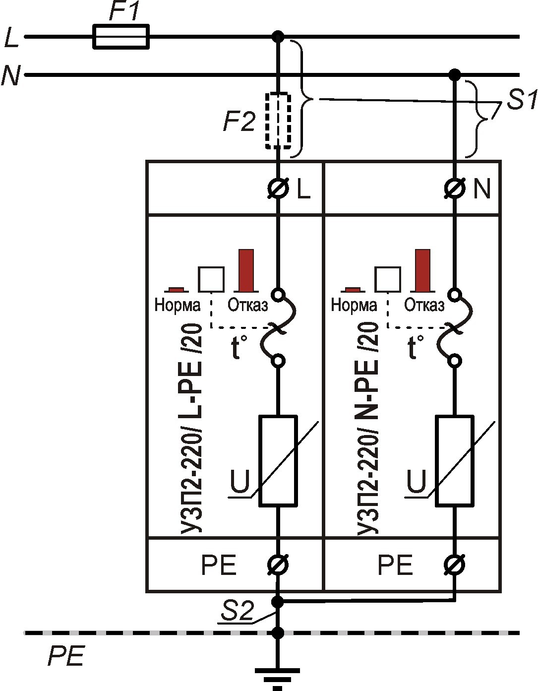 Максимальное длительное рабочее напряжение (Uc) ~275 В / 50 Гц