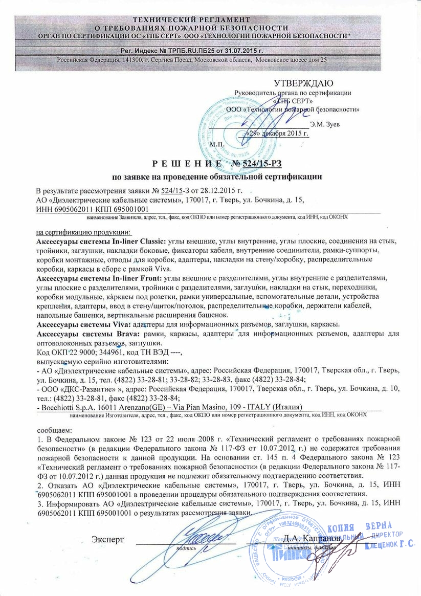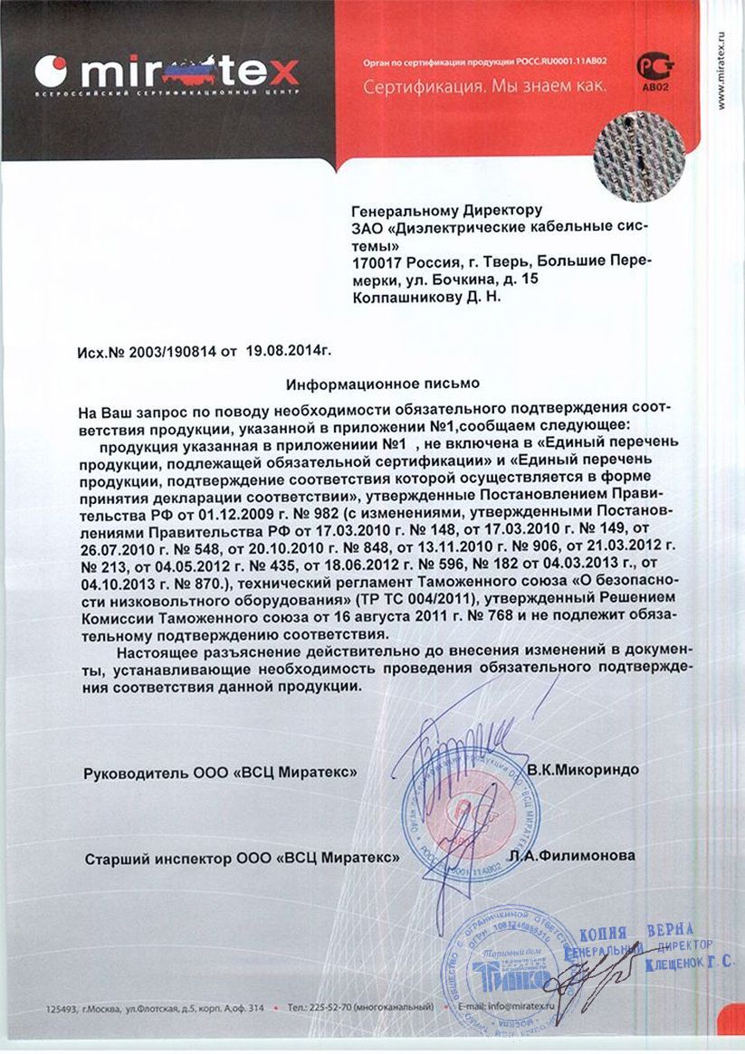 Сертификат DKC INFORPRO1000IN