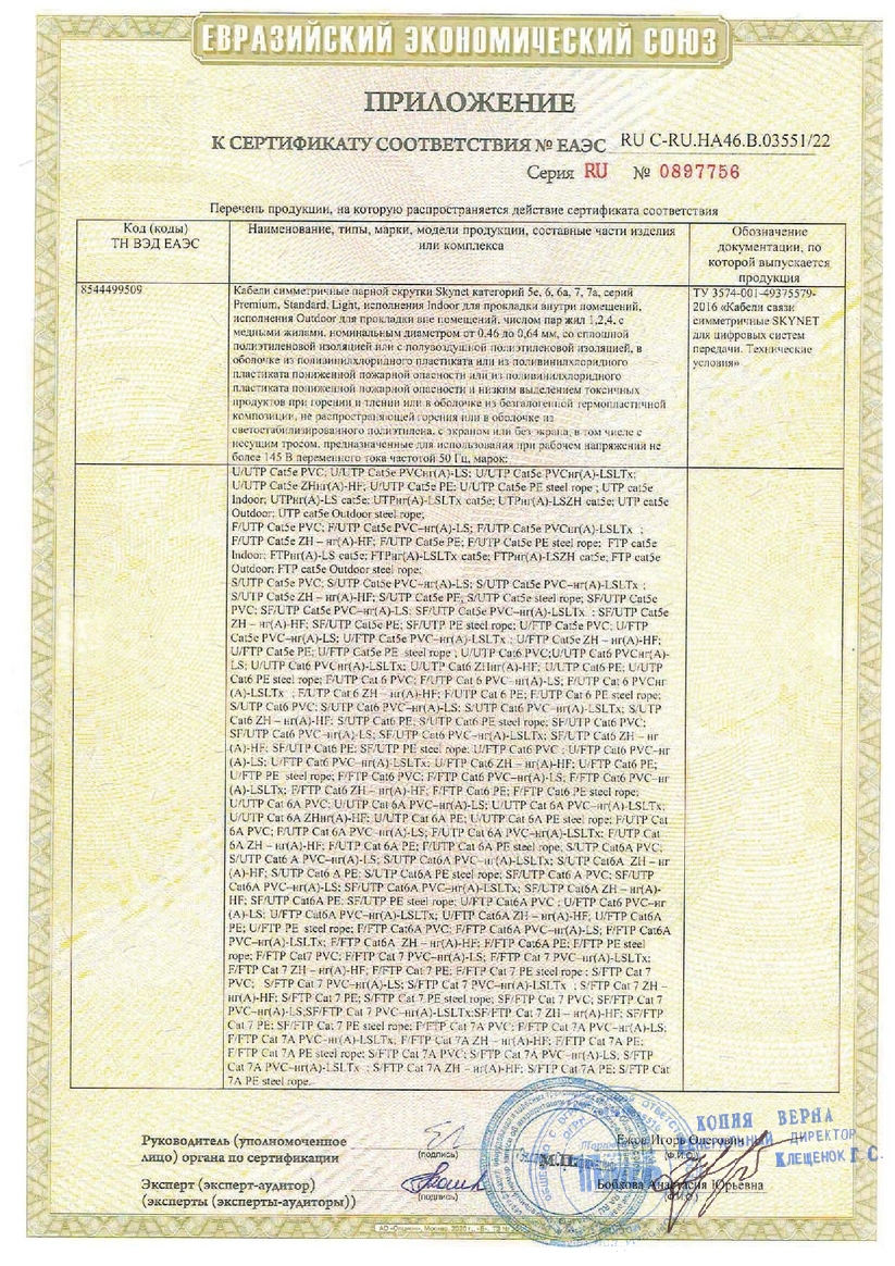 Сертификат соответствия SkyNet Standard UTP OUTDOOR 4x2x0.5 Cu 1693219