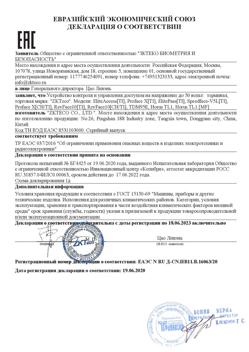Руководство пользователя ZK ProFace X-Ti (ID)