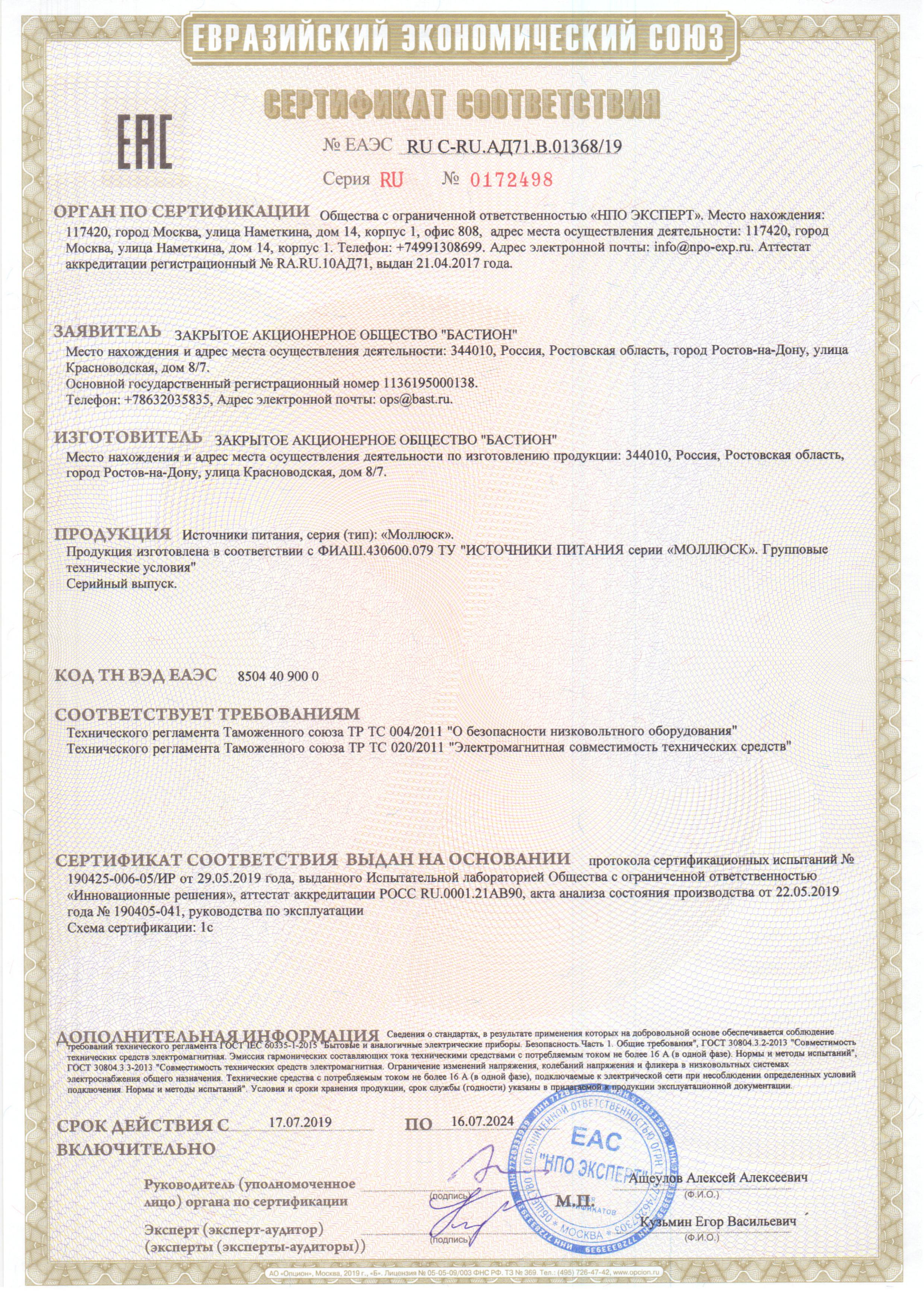 Сертификат AT-ES01