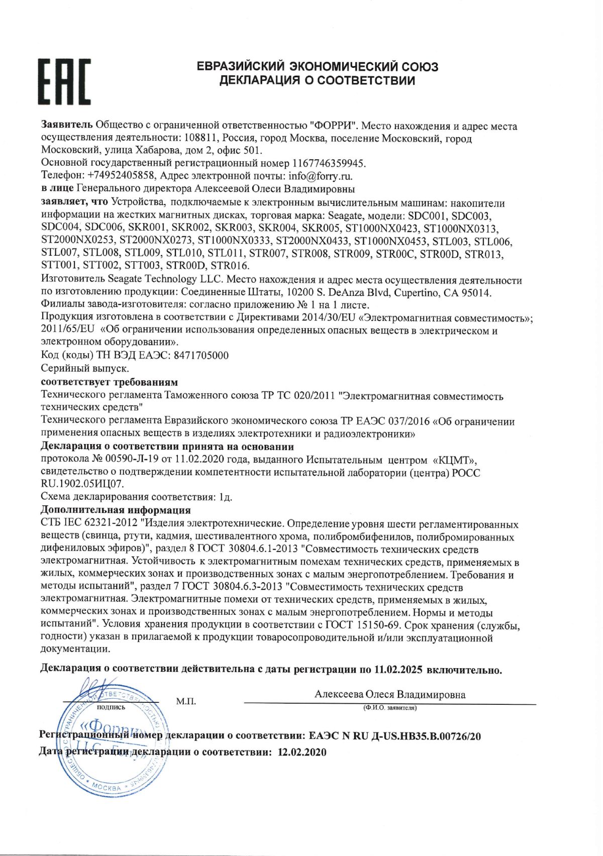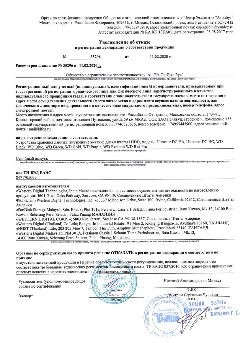Сертификат Жесткий диск 2.0Tb WD Purple WD20PURZ