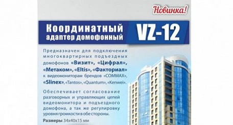 Обновленный координатный адаптер Slinex VZ-12 предназначен для подключения любых 4х-проводных домофонов к координатным многоквартирным домофонам, а также обеспечивает согласование разговорных и управляющих цепей видеомонитора и подъездного домофона.