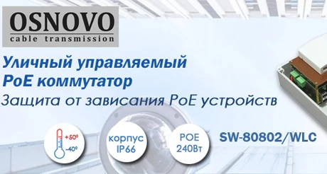 OSNOVO — Управляемый 10-ти портовый сетевой коммутатор для установки вне помещения, оснащенный функцией автоматической перезагрузки устройств.